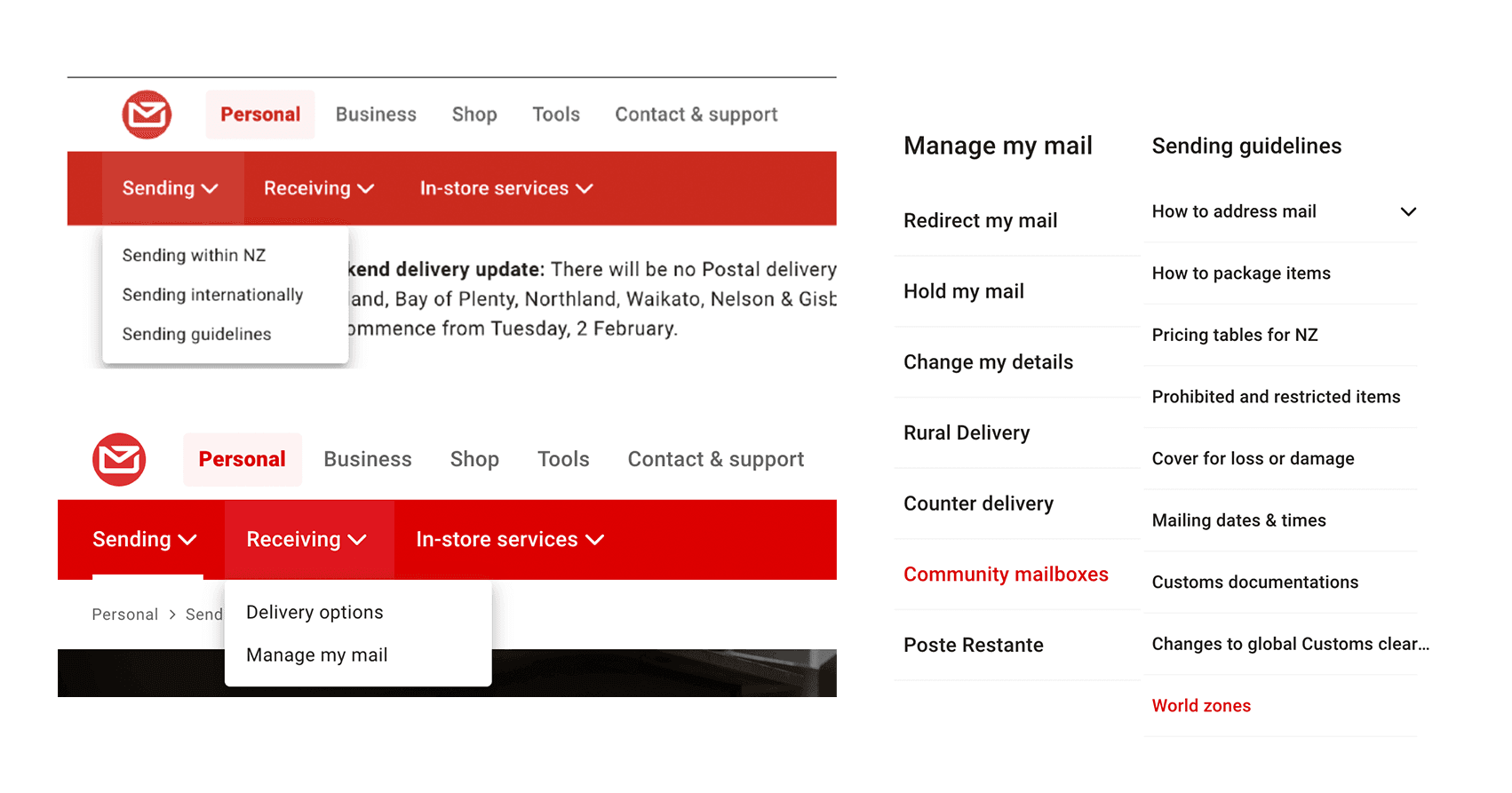 During my digital design internship at NZ Post, I collaborated with a multi-disciplinary UX team in an agile environment to enhance the customer journey across the organisation's digital platforms. My work focused on a major digital transformation project, where I was responsible for migrating legacy, text-heavy content into a modern material theme and designing web pages.